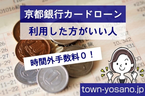 京都銀行カードローンを利用するのであれば、京都府、大阪府、滋賀県といったATM設置台数の多い地域にお住まいの方や、時間外手数料0円キャンペーンが活用できる人にメリットがあります。